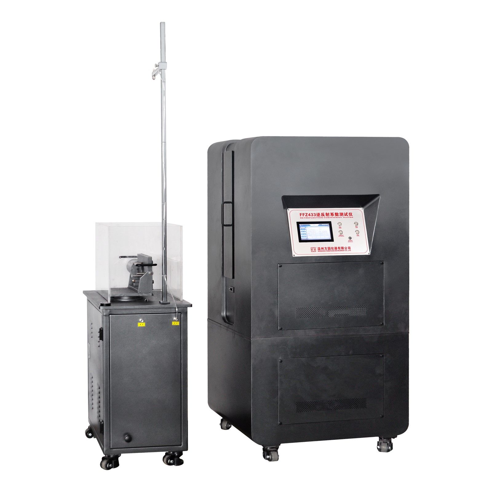 本公司自主研發(fā)FFZ433逆反射系數測試儀用于職業(yè)用高可視性警示材料、中小學生交通安全反光校服等材料在干狀態(tài)和淋雨濕狀態(tài)下反光性能的評定。